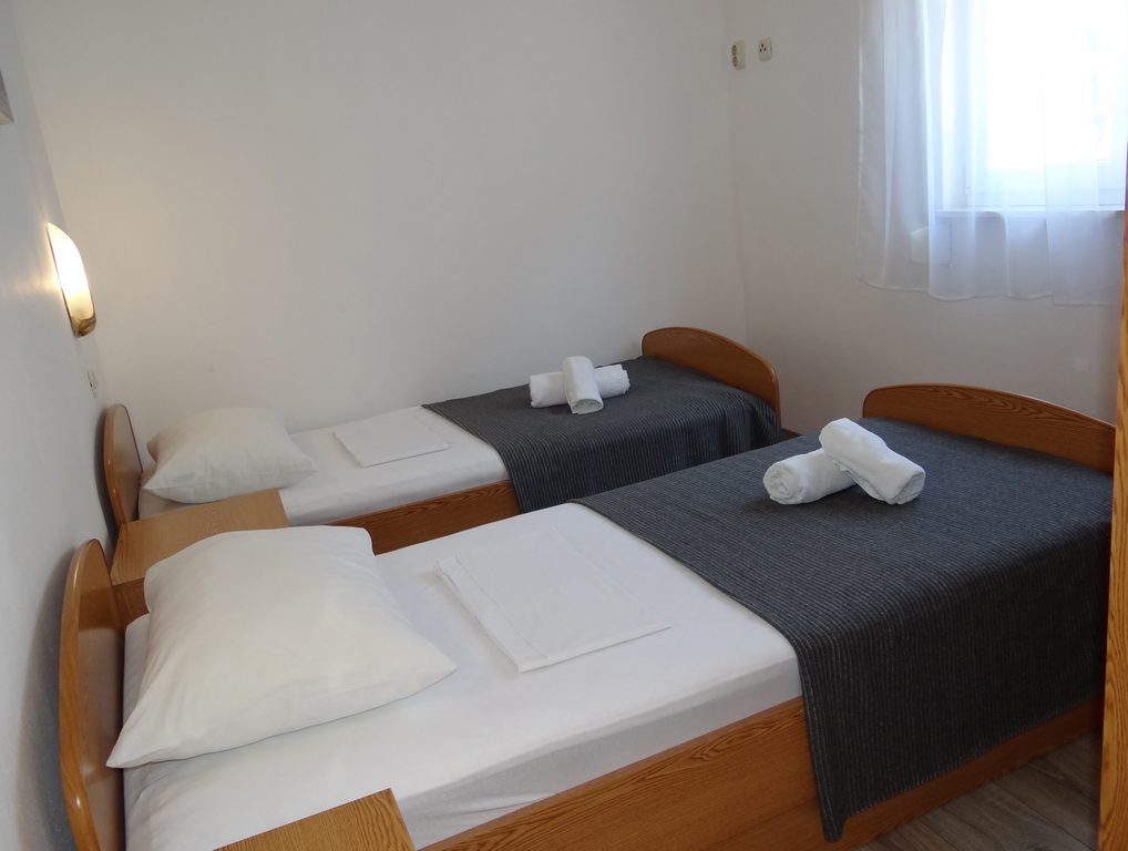 Im ersten Schlafzimmer steht ein Doppelbett und im zweiten Schlafzimmer zwei getrennte Betten.