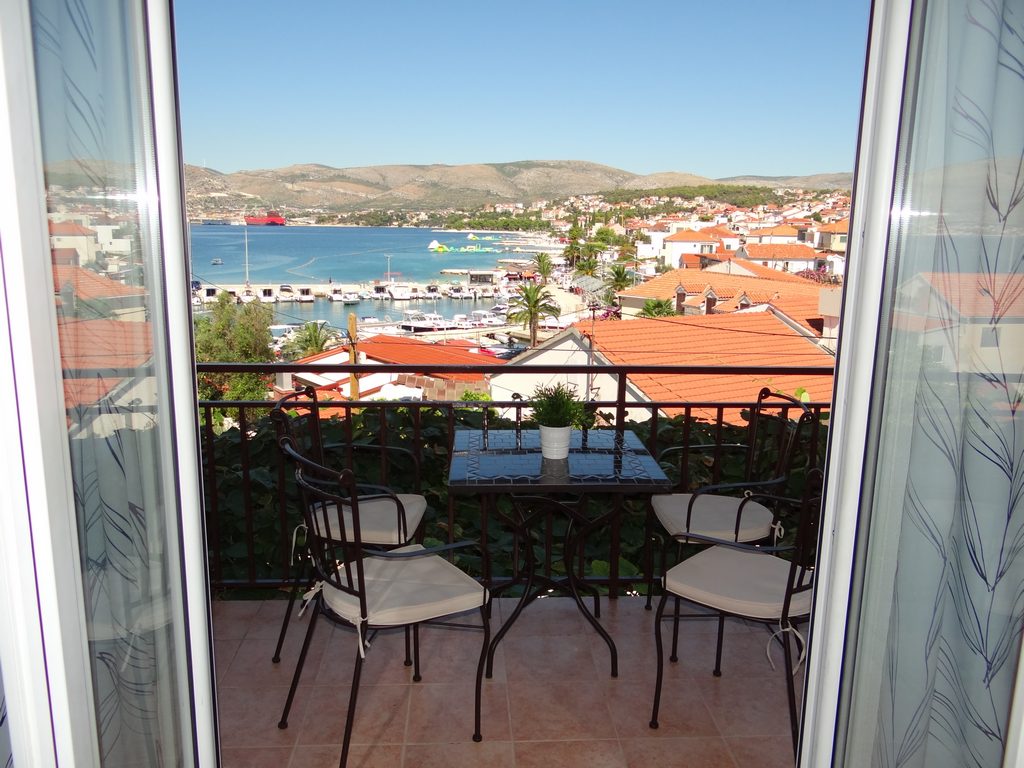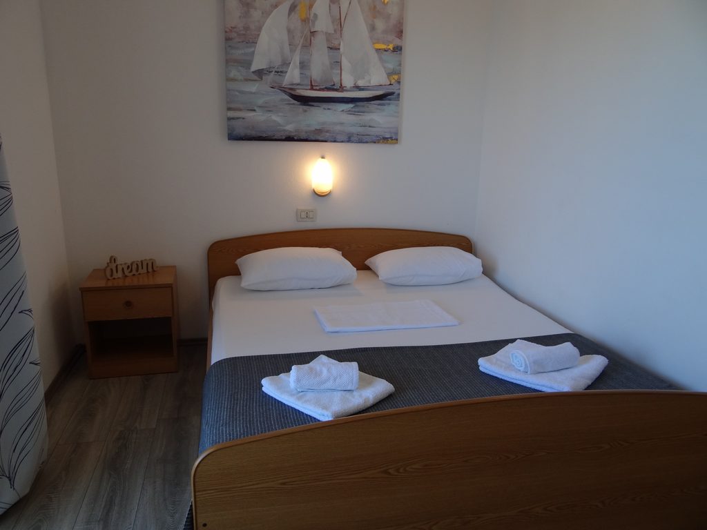 Das Apartment ist auf der zweiten Etage. Es verfügt über getrennte Wohn-und zwei Schlafzimmer, Küche, Bad mit Dusche und zwei Terrassen mit Blick aufs Meer.