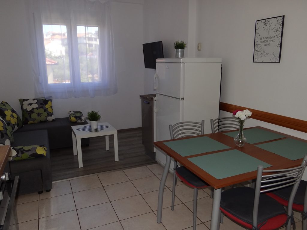 Das Apartment verfügt über eine voll ausgestattete Küche (Kühlschrank, Herd, Geschirrspüler, Mikrowelle, Wasserkocher…), Sat-TV und Internet.